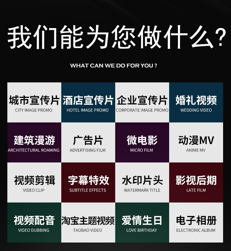 | 广告片/宣传片/微电影/动画/后期/抖音视频制作 |